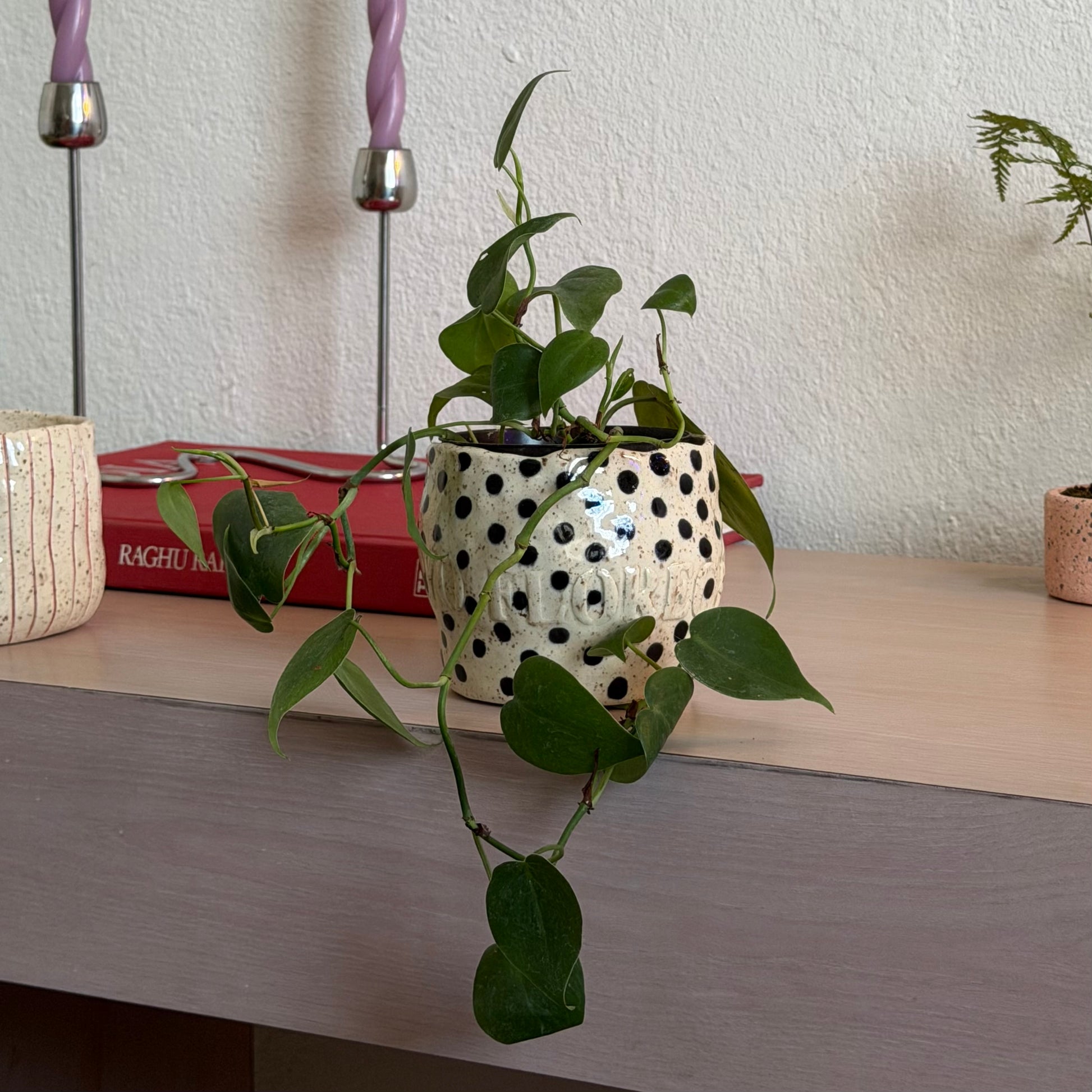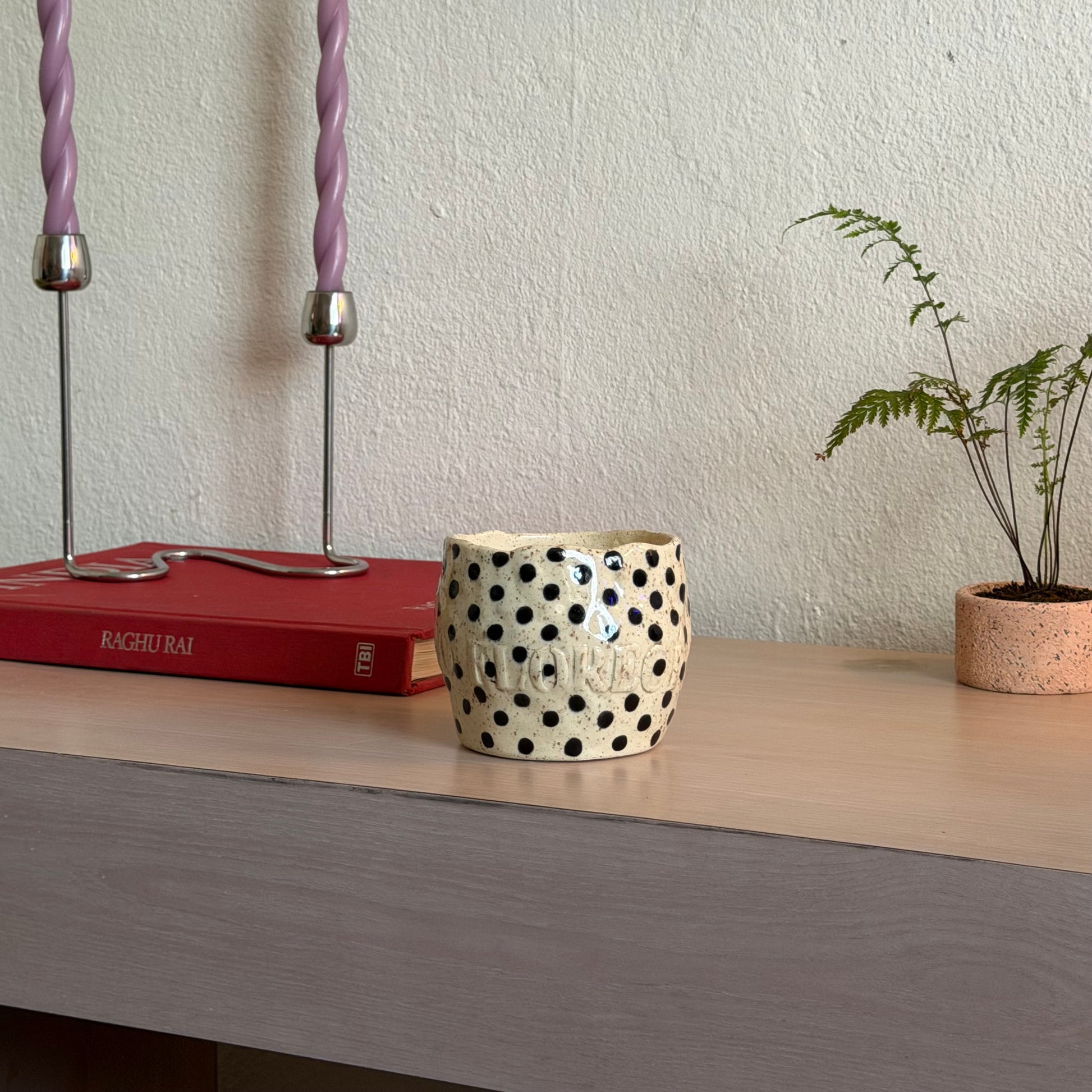 Tiesto para plantas. Dice “YO FLORECÍ”